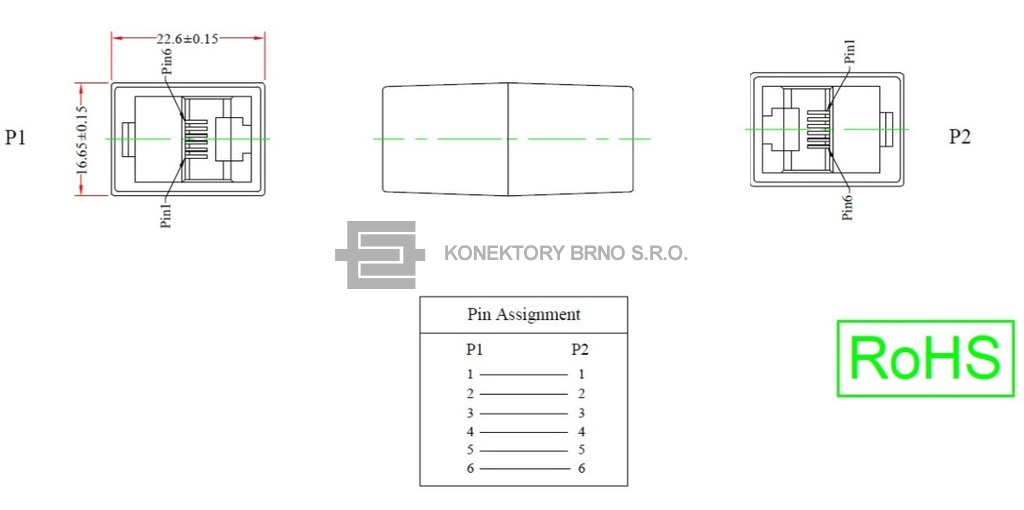 Konektor RJ12 (6p6c) pro nestíněný neskládaný telefonní kabel typ lanko