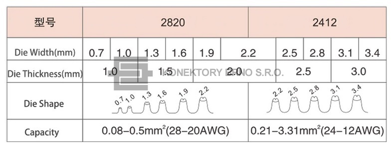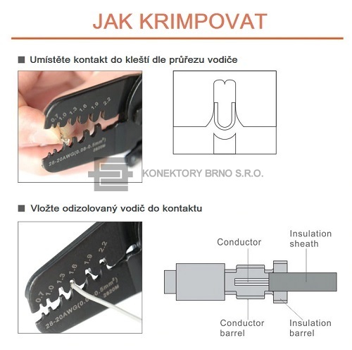 Průřez vodiče: AWG 28-20/0.08-0.5mm2