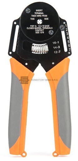 LK-IWS-1216: Kleště na soustružené kontakty typu Harting, Ilme. Aretace proti předčasnému uvolnění tlaku.