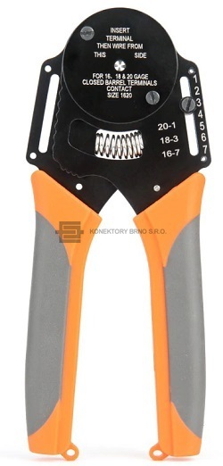 LK-IWS-1620: Kleště na soustružené kontakty typu Harting, Ilme. Aretace proti předčasnému uvolnění tlaku.