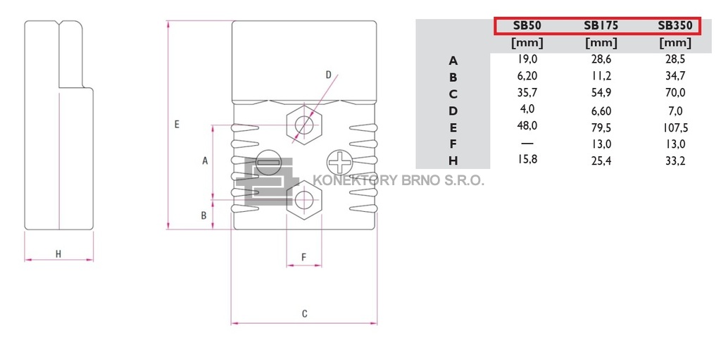 Konektor pro napájení akumulátorů RB 350A