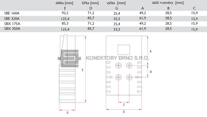 Hlavní kontakt pro série Power, řady SBE 175/160