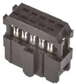 Konektor z řady Latch, přímý s kolíčky do PS a s uchycením pro páskové kabely s roztečí 2,54 x 2,54mm, 2x5 pin