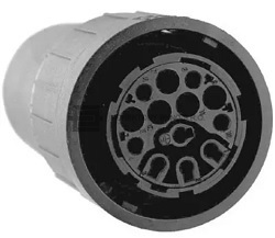 C01610E0120042: Kruhový konektor C 16-3 s dutinkami, rovný. Počet kontaktů 12 + PE, 300 V, 11 A, odlehčovací spona kabelu, kontakty krimpovací (kontakty nejsou součástí)