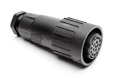 C01610D0080021: Kruhový konektor C 16-3 s dutinkami, rovný. Počet kontaktů 8 + PE, 400 V, 12 A, odlehčovací spona kabelu, kontakty krimpovací (kontakty nejsou součástí)