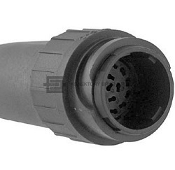 Kruhový konektor C 16-3 s dutinkami, rovný. Počet kontaktů 17 + PE, 100 V, 6 A, odlehčovací spona kabelu, kontakty krimpovací (kontakty nejsou součástí)