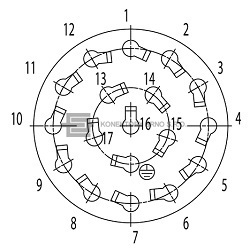 Kruhový konektor C 16-3 s dutinkami, panelový. Počet kontaktů 17 + PE, 100 V, 6 A , kontakty krimpovací (kontakty nejsou součástí)