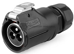 LP-28-C03PE-21-001: Kruhový konektor CNLINKO řady LP-28/M28. Počet pinů 3. Ekvivalent konektoru Lutronic 2850 03 T20CR T
