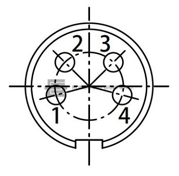 T 3301 001: Kruhový pokovený konektor C 091s dutinkami, rovný. Počet kontaktů 4, 300 V, kontakty letovací