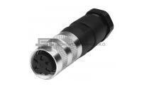 T 3301 002: Kruhový pokovený konektor C 091s dutinkami, rovný s PG9. Počet kontaktů 4, 300 V, kontakty letovací