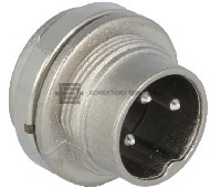 T 3262 000: Kruhový pokovený konektor C 091s kolíčky, panelový s přední montáží. Počet kontaktů 3, 300 V, kontakty letovací