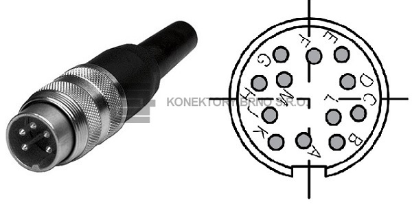 T 3635 001: Kruhový pokovený konektor C 091s kolíčky, rovný. Počet kontaktů 12, 150 V
