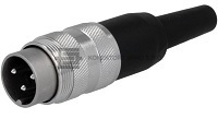 Kruhový pokovený konektor C 091s kolíčky, rovný. Počet kontaktů 3, 300 V, kontakty letovací