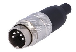 T 3360 010: Kruhový pokovený konektor C 091s kolíčky, rovný. Počet kontaktů 5 - stereo, 100 V, kontakty letovací