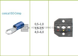 Lisovací čelisti pro izolované konektory a spojky.