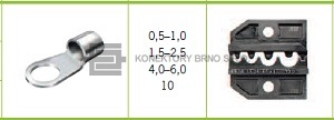 Lisovací čelisti pro neizolovaná kabelová oka a spojky.