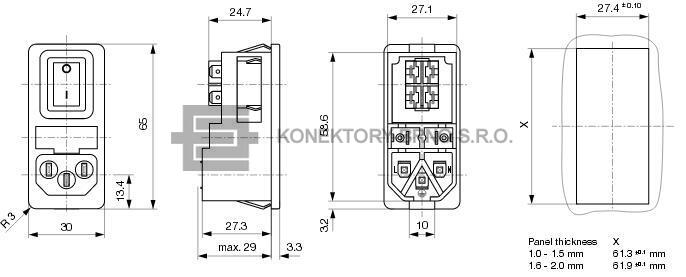Napájecí EURO konektor s vypínačem a pojistkou