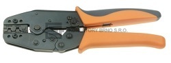 HF 1: Profesionální kleště pro lisování plochých konektorů bez izolace rozměru 4.8 a 6.3mm. Aretace proti předčasnému uvolnění tlaku, šroub pro nastavení přítlaku.