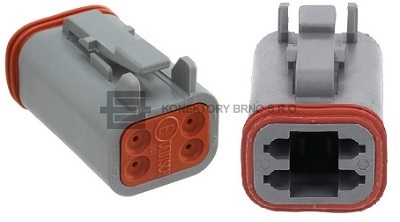 DT06-4S-C015: Vodotěsný řadovový konektor pro automobilový průmysl od výrobce Deutsch. Redukovaná izolace.